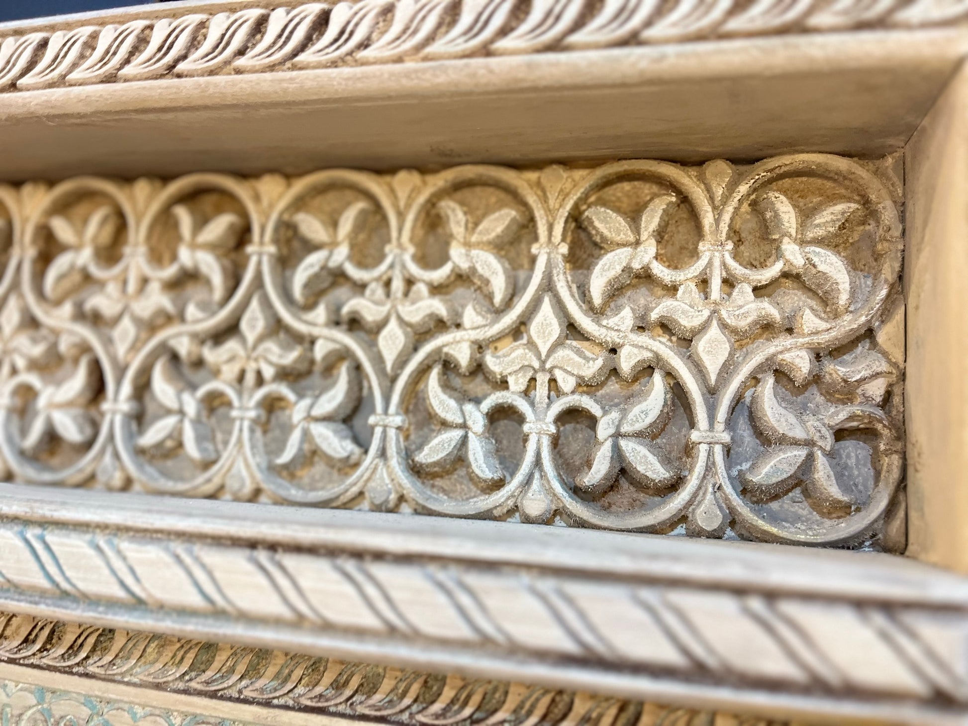 تشطيب نهائي يدوي يمنحها مظهرًا أنيقًا ويبرز التفاصيل الزخرفية بدقة.