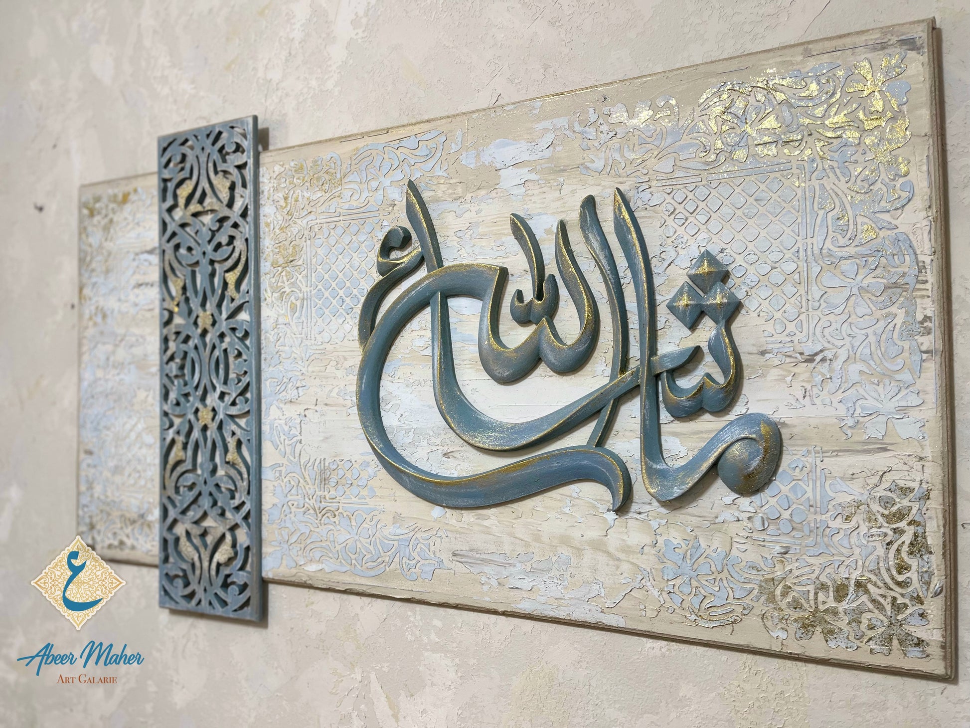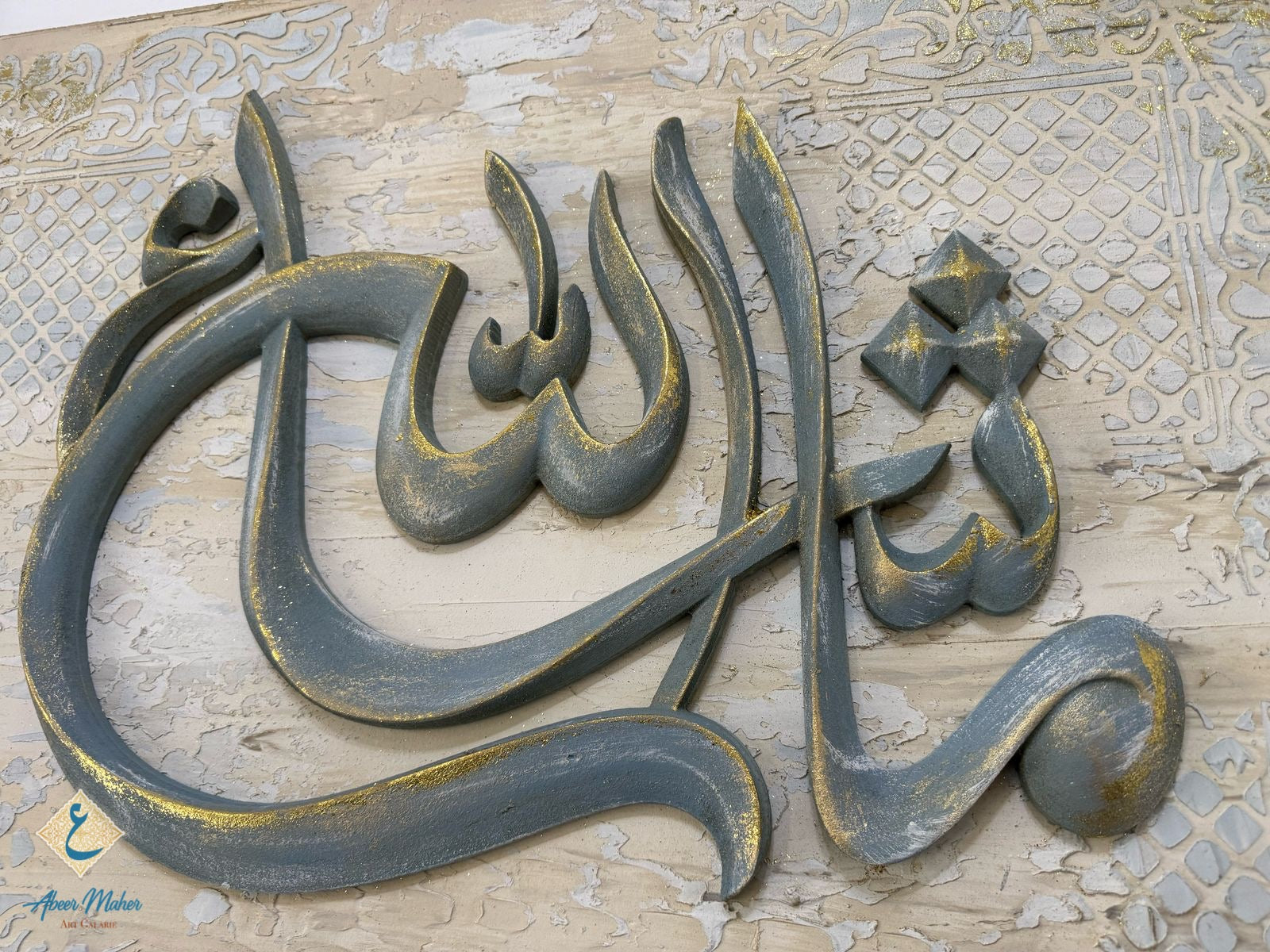 تابلوه من الخشب مع شغل يدوي بارز من المعجون وورق الدهب