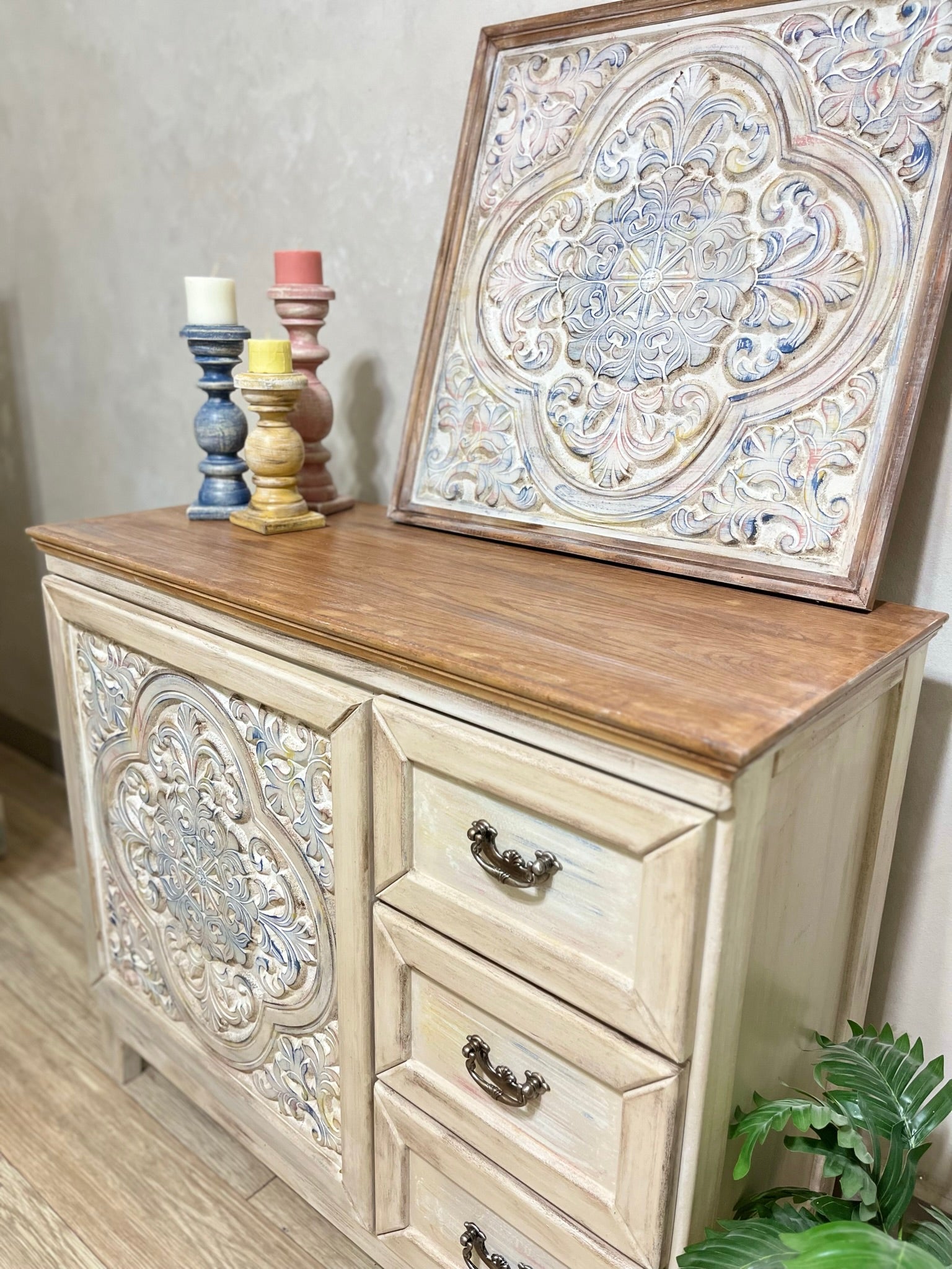Multi-Purpose Cabinet with Decorative Wall Art – A Complete Style Statement